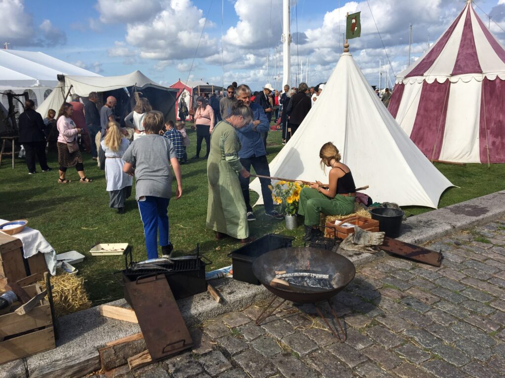 Middelalderfolk i gaden. Aktiviteter for hele familien. Kunsthåndværk. Maritim stemning ved madboderne. Prøv Middelalderens musikinstrumenter, prøv at skyde med bue og pil, bag et fladbrød, se hvordan man farver garn m.m.